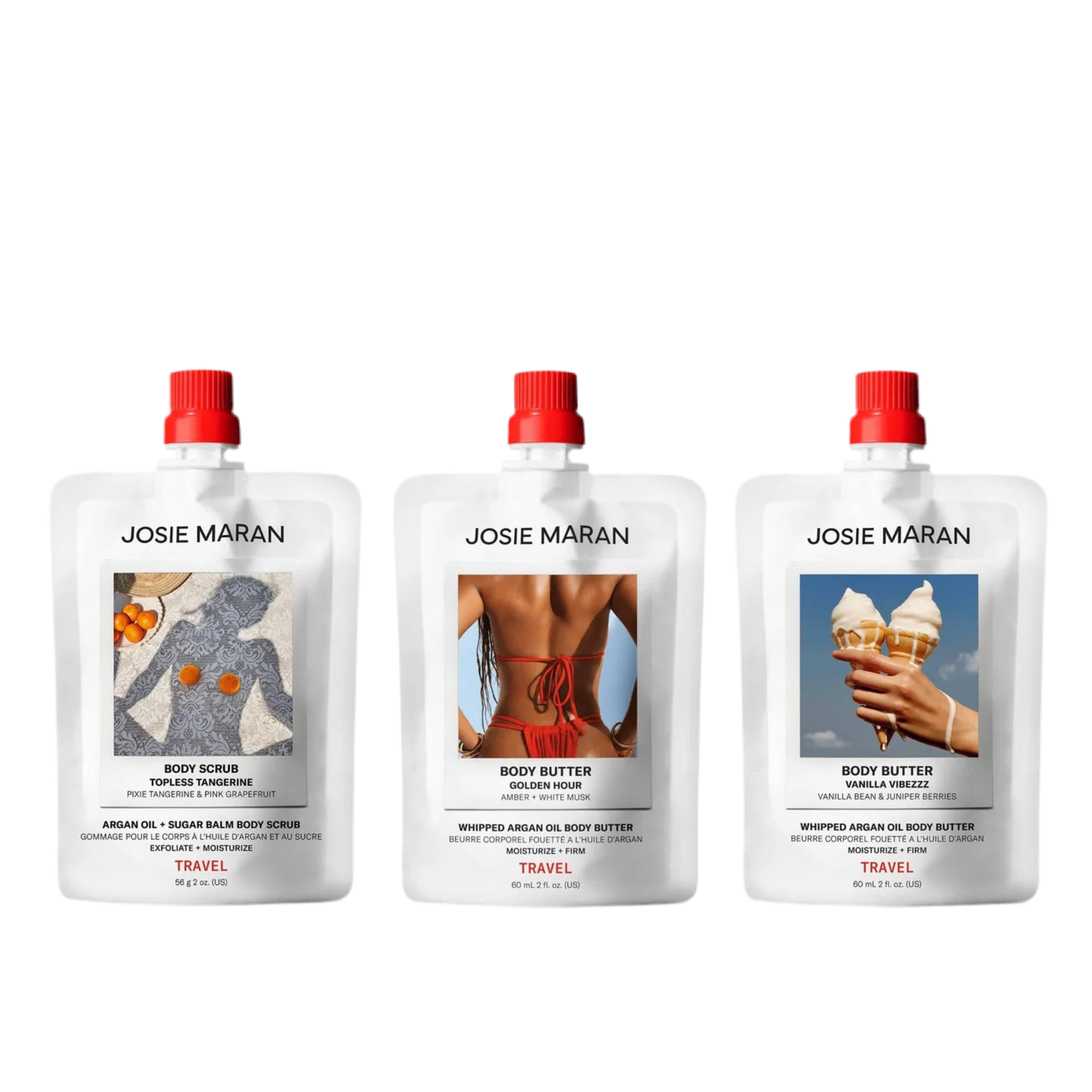 What it is: A travel-size value trio with three scents of bestselling whipped argan-oil body butters, for intensely hydrated and firmer-looking skin all over.
